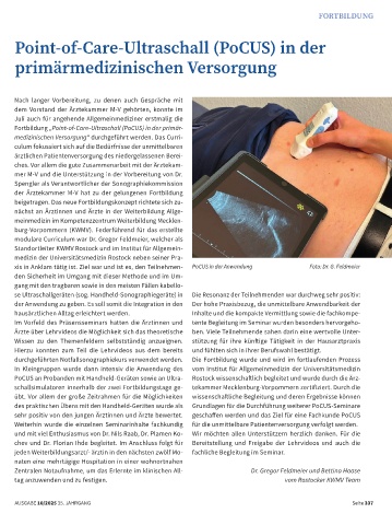 xis in Anklam tätig ist. Ziel war und ist es, den Teilnehmen- PoCUS in der Anwendung Foto: Dr. G. Feldmeier