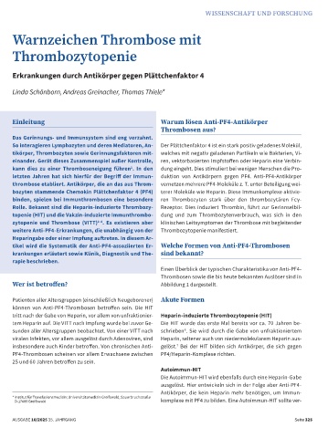 thrombose etabliert. Antikörper, die an das aus Throm- vernetzen mehrere PF4-Moleküle z. T. unter Beteiligung wei-