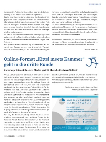 spannenden Kurzvorträgen ist Raum für eine Diskussion und Anmeldung Veranstaltung „Kittel meets Kammer“ per E-Mail