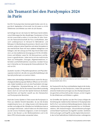 ner erfolgreicher Olympiaerfahrung und ein erfahrener Als Teamarzt für die Para-Leichtathleten beginnt die Vorbe-
