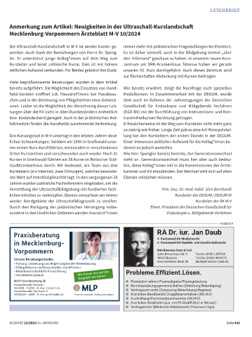 wieder Randgebiete der Ultraschalldiagnostik zu streifen. Kursleiter der ÄK M-V