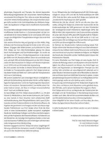 So beschäftigte sich Prof. Stolpe wissenschaftlich u.a. mit dem phrologie und der Kinderdialyse in Mecklenburg-Vorpommern