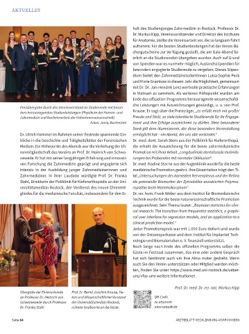 Medizin. Ein Höhepunkt des Abends war die Verleihung der Eh- die erhielt die Auszeichnung für die beste zahnmedizinische