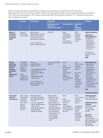 Tabelle 1: Übersicht über die klinische Präsentation, Diagnostik und Therapie der verschiedenen Anti-PF4-Thrombosen
