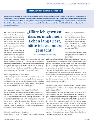 chen ist Herr Schmidt jetzt seit einem Jahr cannabisfrei. Das Interview für das Ärzteblatt führte Wenke Burghardt und