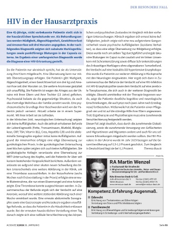 Abgeschlagenheit, einen Gewichtsverlust von drei kg und Ame- sammenschau der Befunde der Verdacht auf eine HIV-Infektion